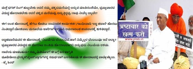 ಹೌದು ನನ್ನ ಬೆಂಬಲವಿದೆ ಅಣ್ಣಾನಿಗೆ ಹಜಾರೆಯ ಮಾತು ಈಗಾಗಲೇ ಹಜಾರಜನರಿಗೆ ತಲುಪಿವೆ….