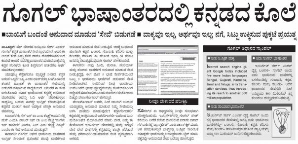 ಗೂಗಲ್ ಸಂಸ್ಥೆಯು ಇತ್ತೀಚಿಗೆ ತನ್ನ ಭಾಶಾಂತರ ಸೇವೆಯ ಕನ್ನಡ ಅವತರಣಿಕೆಯ ಆಲ್ಫಾ ಆವೃತ್ತಿಯನ್ನು ಬಿಡುಗಡೆ ಮಾಡಿದೆ. ಇಂಗ್ಲಿಷ್ ಭಾಷೆಯಿಂದ ಕನ್ನಡಕ್ಕೆ ಯಾಂತ್ರೀಕೃತ ಭಾಶಾಂತರಕ್ಕೆ ಇದು ಮೊದಲ ಪ್ರಯತ್ನ. ಆದರೆ ಇದು ಕನ್ನಡದ ಕೊಲೆ ಎಂದು ಉದಯವಾಣಿಯು ‘ವಾಷಿಂಗ್ಟನ್ನಿಂದ’ ವರದಿ ಮಾಡಿದ್ದಾರೆ.