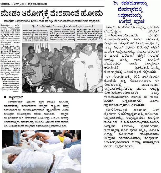ಯುಪಿಎ ಒಕ್ಕೂಟದ ಅಧ್ಯಕ್ಷರು ಮತ್ತು ಕಾಂಗ್ರೆಸ್ ಪಕ್ಷದ ಅಧ್ಯಕ್ಷರು ಆದ ಶ್ರೀಮತಿ ಸೋನಿಯ ಗಾಂಧಿ ಸರ್ವೈಕಲ್ ಕ್ಯಾನ್ಸರ್ ನಿಂದ ಬಳಲುತಿದ್ದು ಅಮೆರಿಕದ ಪ್ರಖ್ಯಾತ ಕ್ಯಾನ್ಸರ್ ಆಸ್ಪತ್ರೆಯಲ್ಲಿ ಚಿಕಿತ್ಸೆ ಪಡೆಯುತ್ತಿರುವ ವಿಷಯ ಎಲ್ಲರಿಗೂ ಗೊತ್ತಿರುವಂತಹದ್ದು. ಅವರು ಬೇಗ ಗುಣಮುಖರಾಗಲಿ ಎಂದು ದೇಶದ ಬಹುತೇಕ ಜನರು ದೇವರಲ್ಲಿ ಪ್ರಾರ್ಥಿಸುತಿದ್ದಾರೆ. ನಾವು ಸಹ ಅವರು ಶೀಘ್ರ ಗುಣಮುಖರಾಗಲಿ ಎಂದು ಆಶಿಸುತ್ತೇವೆ.