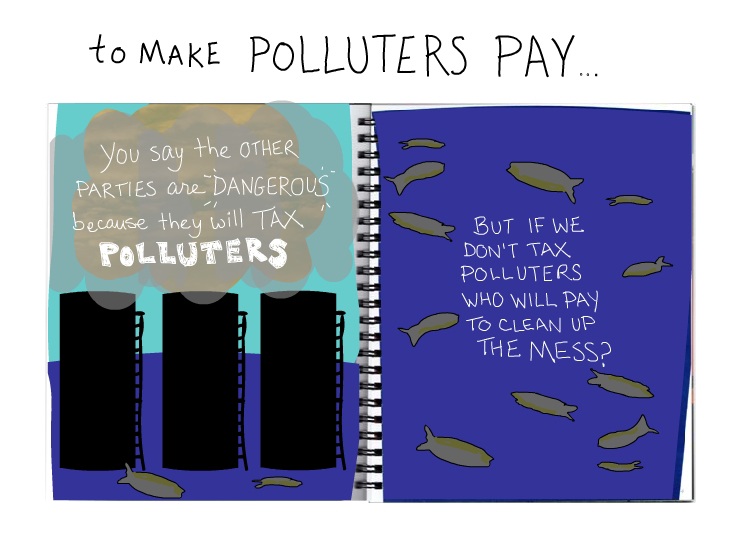ಹೌದಾ ಪ್ರದಾನ ಮಂತ್ರಿಗಳೇ, ಮಲೀನತೆ ತೇರಿಗೆ ನಿಜಕ್ಕೂ ದೇಶಕ್ಕೆ ಹಾನಿಮಾಡುವುದೇ ಎಂದು ಮುಗ್ದವಾಗಿ ಪ್ರಶ್ನಿಸುತ್ತಾರೆ. ನೀವು ಮಾತಾಡುತ್ತಿರುವ ವಿಚಾರ ಪರಿಣಾಮ ನಿಮಗೆ ಚೆನ್ನಾಗಿ ಗೊತ್ತಾ? ಮುಂದೆ ಹಿಮ ಕರಡಿ ಕಾಣೋದು ಎರಡು ಡಾಲರ್ ನಾಣ್ಯದಲ್ಲಿ ಮಾತ್ರವಾದರೆ ನಮ್ಮ ನಿಮ್ಮ ಮಕ್ಕಳು ಮೊಮ್ಮಕ್ಕಳು ಏನು ಹೇಳಬಹುದು. ಎಂದೂ ಕೇಳುತ್ತಾರೆ. ಈ