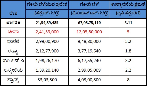 ಅಕ್ಕಿ, ಗೋಧಿ ಮತ್ತು ಮೆಕ್ಕೆ ಜೋಳದ ವಾರ್ಷಿಕ ಉತ್ಪಾದನೆಯ ಕೆಲವು ಅಂಕಿ-ಅಂಶಗಳನ್ನು ಈ ಕೆಳಗೆ ಕೊಡುತ್ತಿದ್ದೇನೆ: