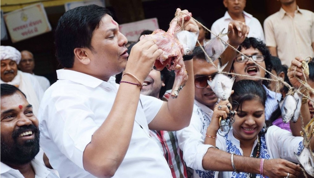 ಜೈನ ಸಮುದಾಯದವರ ಪರ್ಯೂಶನ್ ವ್ರತ ಪ್ರಯುಕ್ತ ಮಹಾರಾಷ್ಟ್ರ ಸೇರಿದಂತೆ ಕೆಲವು ರಾಜ್ಯದಲ್ಲಿ ಗೋಮಾಂಸ ನಿಷೇಧಿಸಿರುವುದು ಎಲ್ಲಿರಿಗೂ ಗೊತ್ತಿರುವ ವಿಷಯವೇ.! ಆದ್ರೆ ಸ್ನೇಹಿತರೇ.. ಸರ್ಕಾರದ ನಿರ್ಧಾರವನ್ನು ಖಂಡಿಸಿ ಮಹಾರಾಷ್ಟ್ರ ನವ ನಿರ್ಮಾಣ ಸೇನೆ ಜೈನರ ಎದುರು ರಸ್ತೆಯಲ್ಲಿ ಚಿಕನ್ ಸುಟ್ಟು ಪ್ರತಿಭಟನೆ ನಡೆಸುವ ಮೂಲಕ ಅತಿರೇಕದ ವರ್ತನೆ ತೋರಿಸಿದೆ. ಮಹಾರಾಷ್ಟ್ರದಲ್ಲಿ ಜೈನರು ಸಭೆ ಸೇರಿದ ಪ್ರದೇಶದ ತೀರಾ ಹತ್ತಿರದಲ್ಲಿಯೇ ಆ ಸಮುದಾಯದ ಎದುರಿಗೇ ಮಾಂಸ ಸುಡುವ ಮೂಲಕ ನವ ನಿರ್ಮಾಣ ಸೇನೆ ಅತೀ ಧೂರ್ತತನ ಪ್ರದರ್ಶಿಸಿದೆ. ಆದರೆ ಜೈನರು ಇದನ್ನೆಲ್ಲಾ ಕಡೆಗಣಿಸಿ ಮೌನವಾಗಿ ಅಲ್ಲಿಂದ ಹೊರ ನಡೆದಿದ್ದಾರೆ.